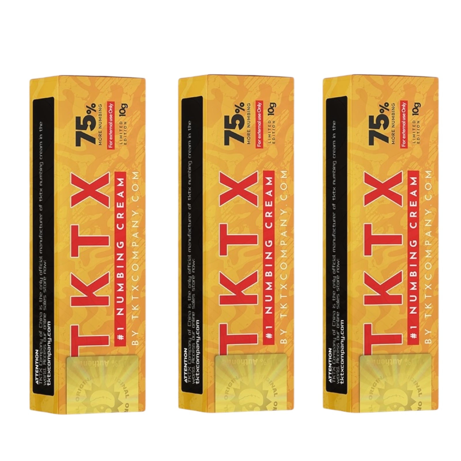 TKTX Crème Gold 75% est une crème cosmétique externe spécialement formulée pour être utilisée avant des procédures esthétiques non invasives, telles que les tatouages, piercings et autres traitements réalisés par des professionnels qualifiés. Elle est destinée à être appliquée sur une peau saine pour offrir un confort accru pendant ces traitements.